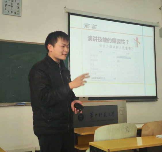 (当代师范生讯 通讯员 徐三艳)4月14日下午16:00,以“演讲路上”为主题的“星期五文化沙龙”活动在教师教育学院A101教室举行,本次活动旨在通过演讲技巧与方法的介绍帮助大家提升口语表达能力,未来教育家联盟前任主席、师范生口语表达训练指导团成员侍禹廷担任主讲。