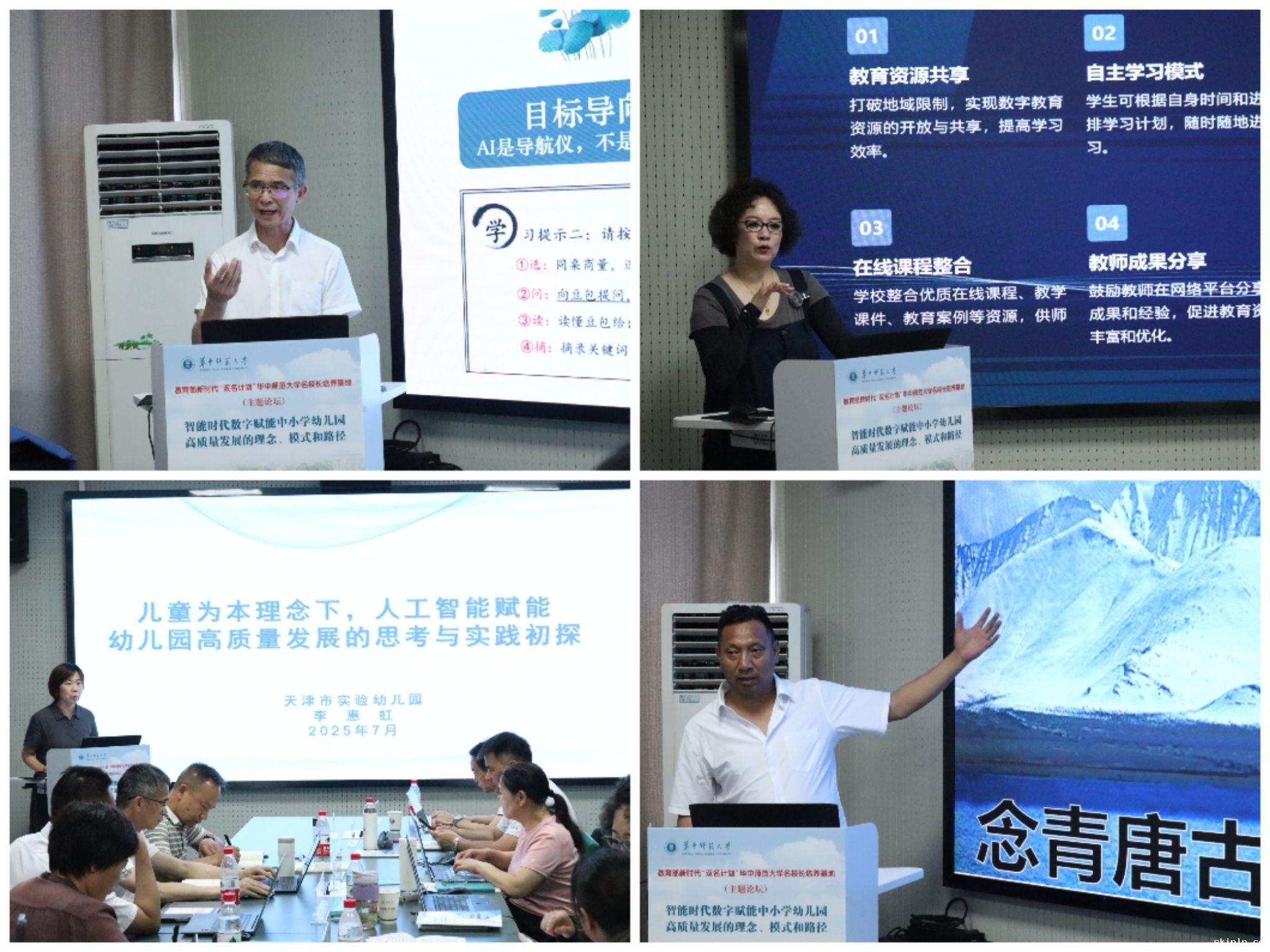 长沙市长郡双语实验中学黄斌校长以《以“校园智能体”加速学校数字化转型》为题,阐述了技术驱动下的校园治理创新;湖北省荆州中学朱胜祥书记聚焦《教育强国建设规划纲要》,探讨了政策引领下数字赋能学校发展的路径;华南师范大学附属幼儿园吴冬梅园长的《数智赋能协同共育——数字化时代守护幼儿成长的温度》,展现了技术与幼儿教育融合的温情实践;甘南州幼儿园武云霞园长则通过《五维齿轮驱动下的幼儿园数智实践》,分享了结合地域特色的数字化探索成果。