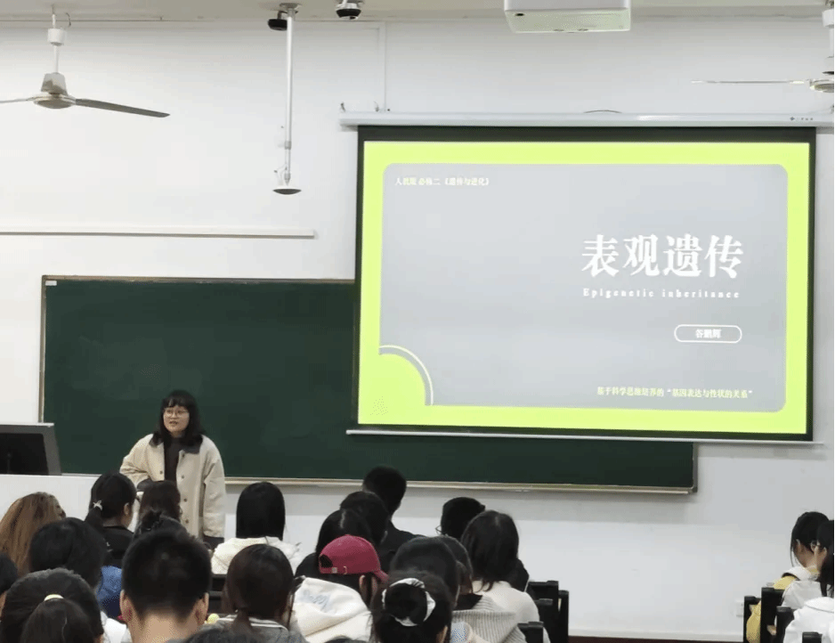 微讲座中,谷鹏辉系统梳理了“表观遗传”一课的教学目标设定逻辑、教学设计框架与多元化教学方法选择依据,从“如何精准对接学生认知水平”“怎样通过问题驱动培养科学思维”“如何借助教学论证深化知识理解”三个维度,结合生物学科“重实验、强逻辑、贴近生活”的教学特点,向在场师范生分享了从备课到授课的全流程实战经验。讲座内容兼具理论高度与实践指导性,为师范生搭建起教学理论与课堂实践之间的衔接桥梁。