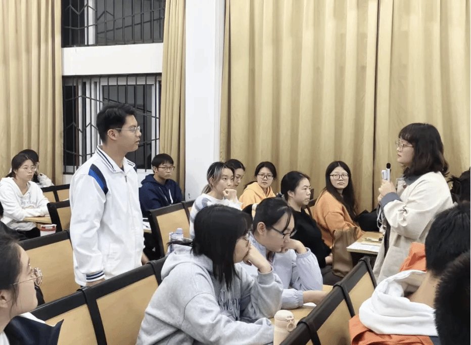 师生交流环节,同学们就教学语言艺术、课堂管理技巧、教学资源整合、教师职业发展等问题踊跃提问,谷鹏辉逐一细致解答,并鼓励同学们夯实专业基础、提升教学能力,努力成长为优秀的人民教师。