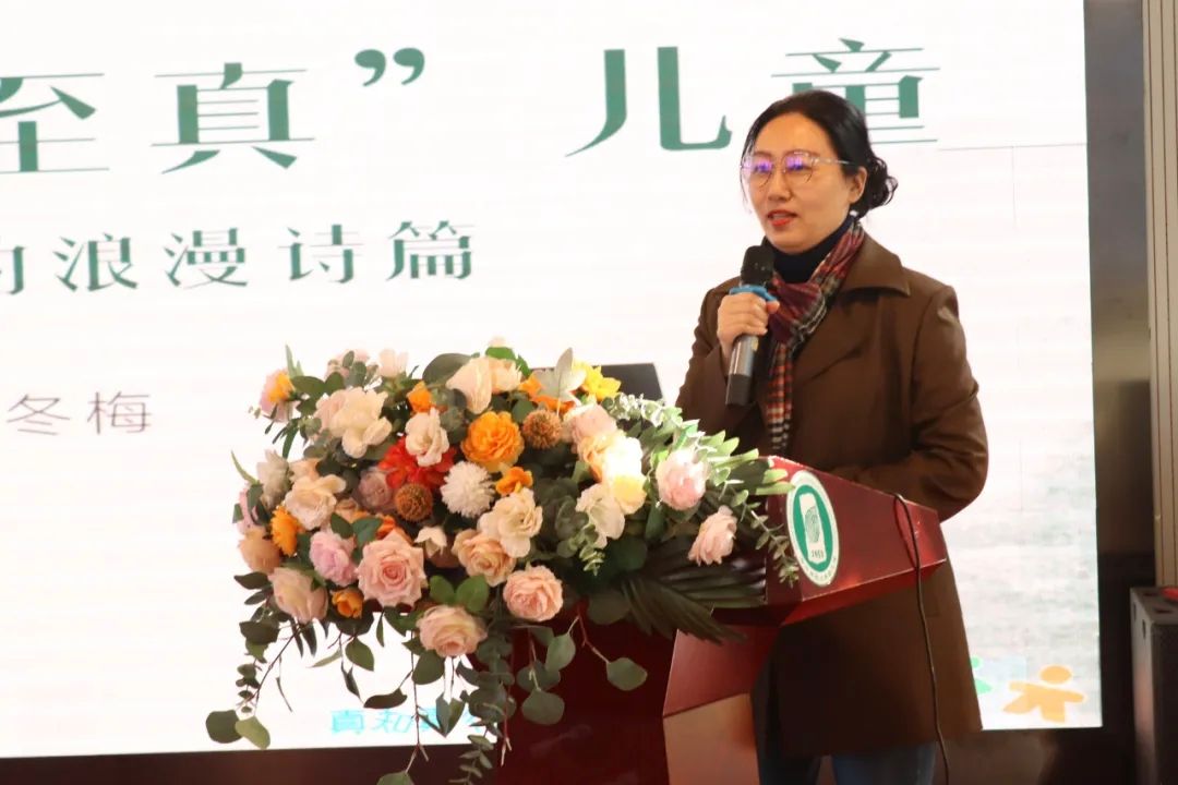 华南师范大学附属幼儿园园长吴冬梅在《筑生命之根,育“至真”儿童——我与孩子三十五载的浪漫诗篇》主题报告中深情回顾了三十五年来的教育故事。从守护到守望,爱与责任并存,吴园长提出要立足幼教、跳出幼教、引领幼教,站在全学段教育审视学前教育。