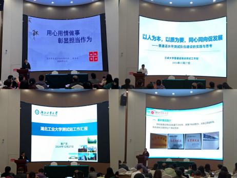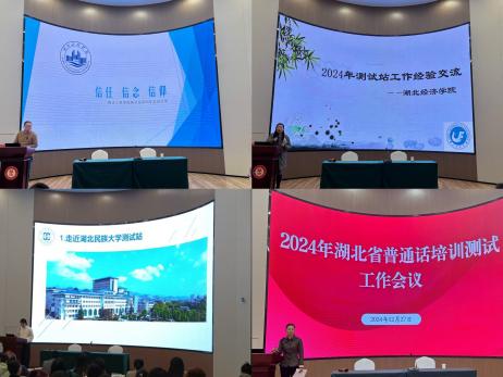 在经验交流环节,武汉市、荆州市、宜昌市、黄冈市、随州市测试站以及三峡大学、湖北工业大学、湖北师范大学、湖北民族大学、湖北经济学院、湖北工程学院测试站作交流发言,从不同角度分享了在普通话水平测试工作中的宝贵经验和实践心得。省中心执行主任做总结发言,充分肯定了经验交流的十一个测试站的工作成绩和工作特点。她强调,新的一年全省必将群策群力,不断为普通话水平测试工作注入新的活力和动力。