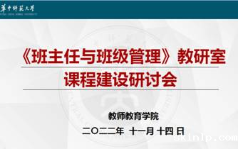2022年11月14日14:00,我校“班主任与班级管理”教研室第二次课程建设研讨会在教师教育学院B202按期举行,教研室全体成员参与。此次会议以线上线下相结合的形式开展,核心议题是:“班主任与班级管理”课程的教材/教学大纲研制(一)。会议上,周东明主任强调:我们要完成好这个课程的教学工作,首先要通过多次研讨确立更合理的教材/教学大纲,编制具有华师特色的教材,在此基础上开发更多的教辅资料,最终形成系列优秀教研成果,由此,我们团队每个人都要发挥自己的专业优势,长期投入到这项教研工作中。